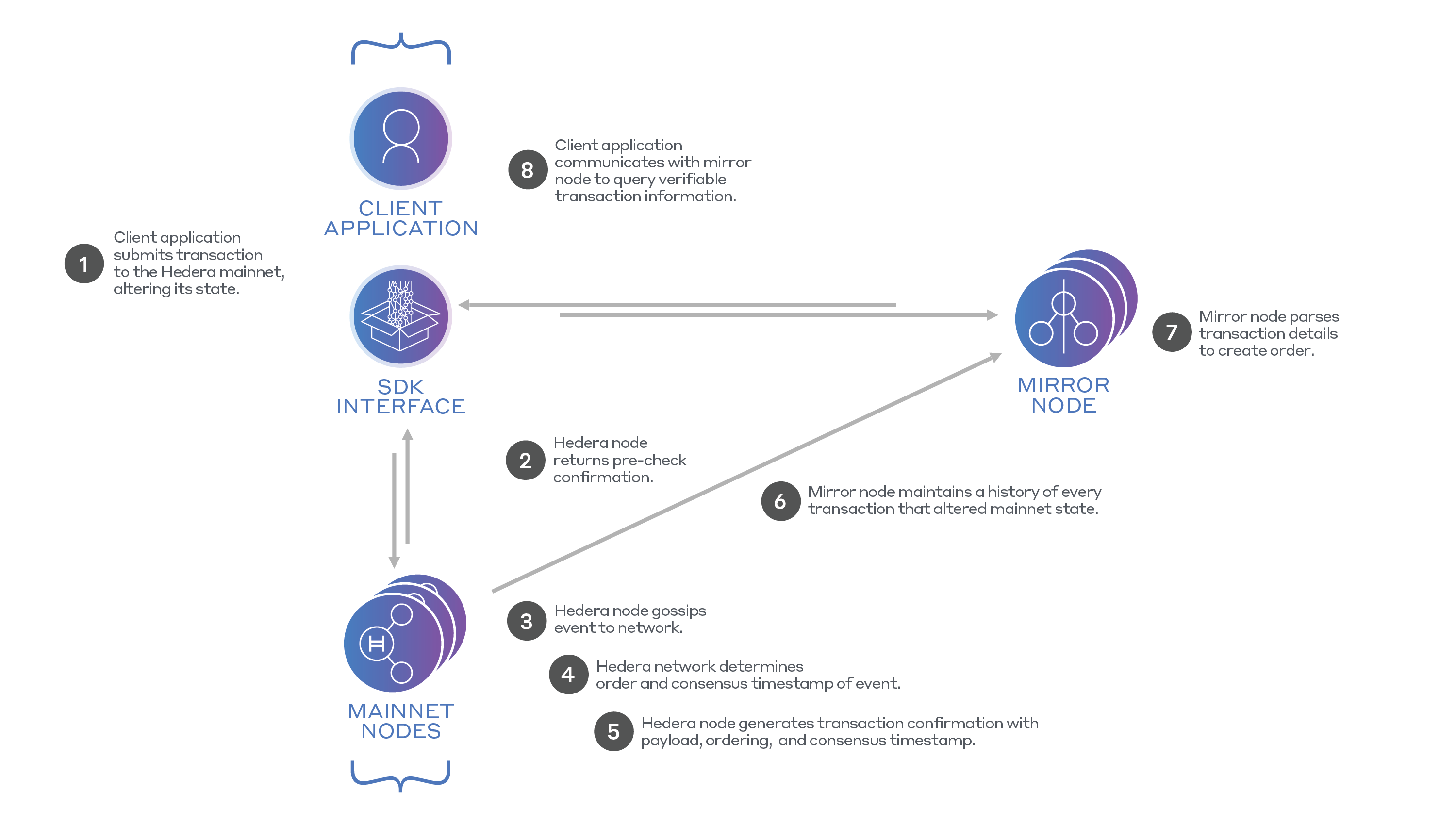 For Hedera Mainnet nodes, the priorities contribute to consensus and persists state. The hashgraph, which contains all the transactions that change the state, is constantly pruned after transactions are assigned a place in consensus order. Mainnet nodes can delete older portions of the hashgraph because the algorithm delivers finality – once a transaction has been assigned a timestamp, ordered, and then applied to the state, there is no chance of reversal. Consequently, there is no need to keep historical transactions around in case they might be necessary to apply them in a different order. To prevent such historical transactions from filling up the node’s storage, mainnet nodes delete historical transactions. But there is value in the history being persisted, even if not by mainnet nodes. An auditor might want to determine the identities of the parties that sent HBAR to a given account or the times of those transfers, neither of which would be available from the state (e.g., the balances of the accounts) alone.Roles of Mirror Nodes