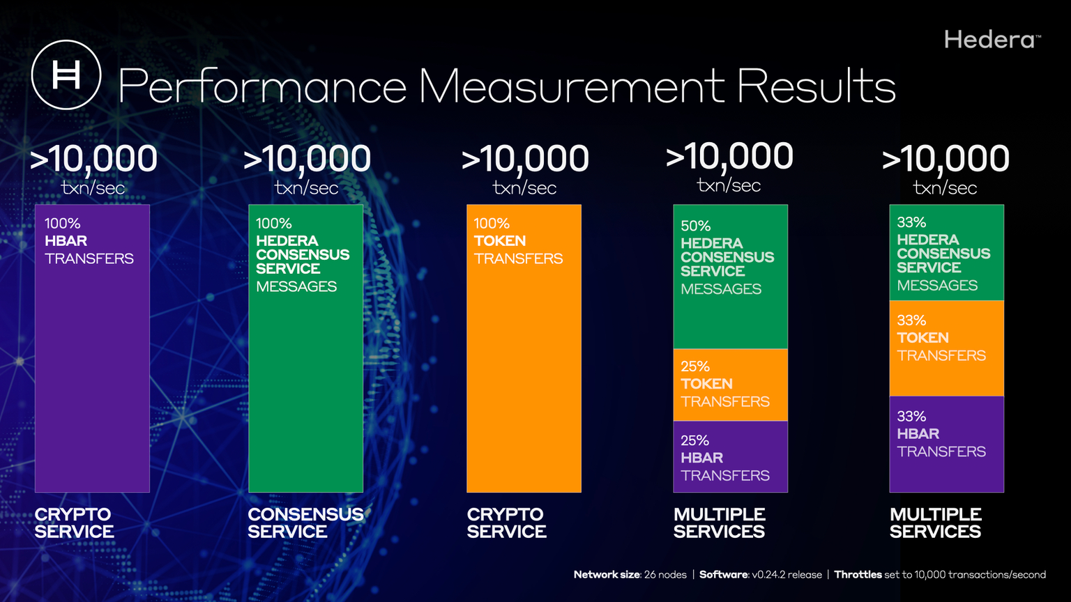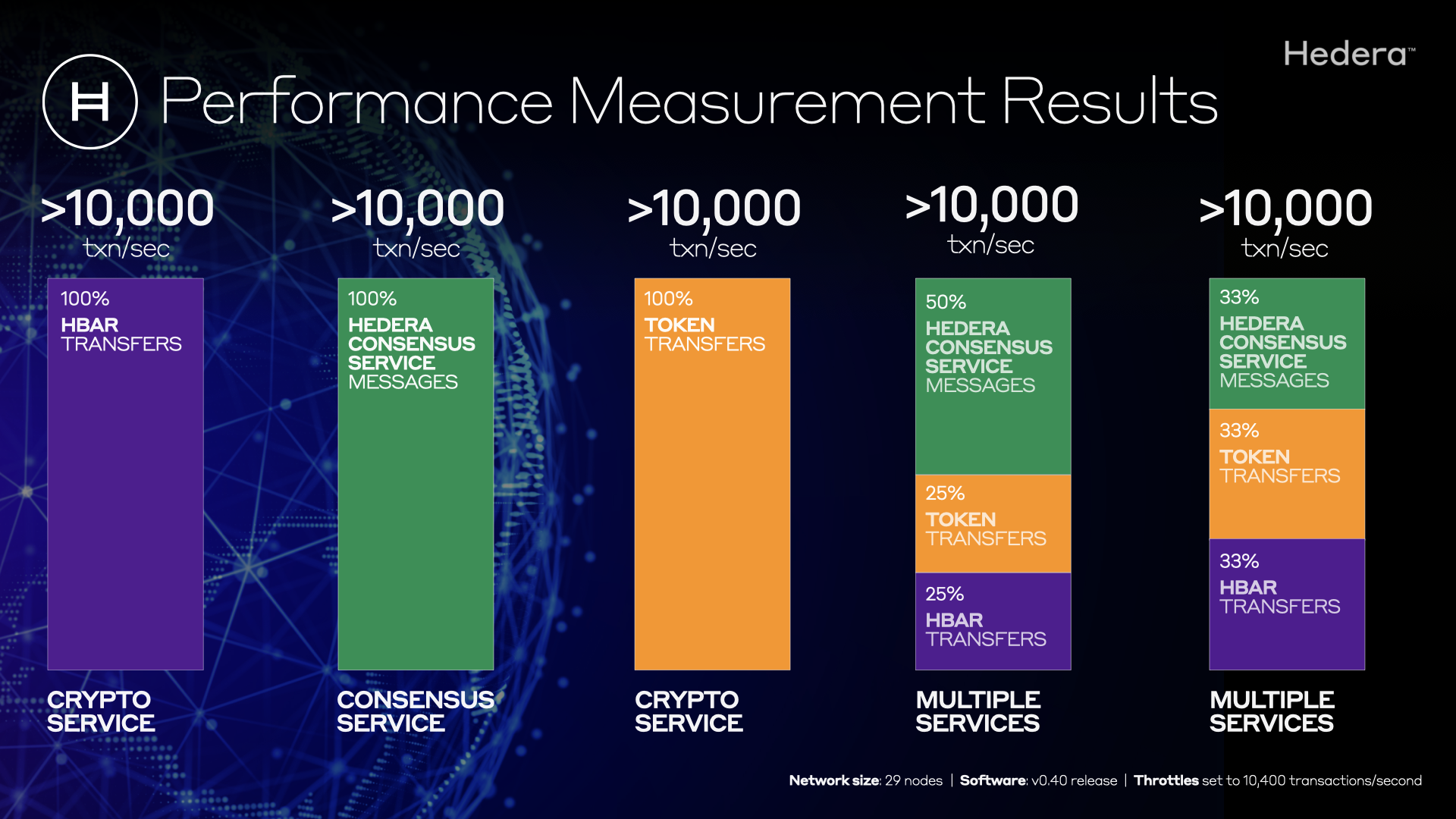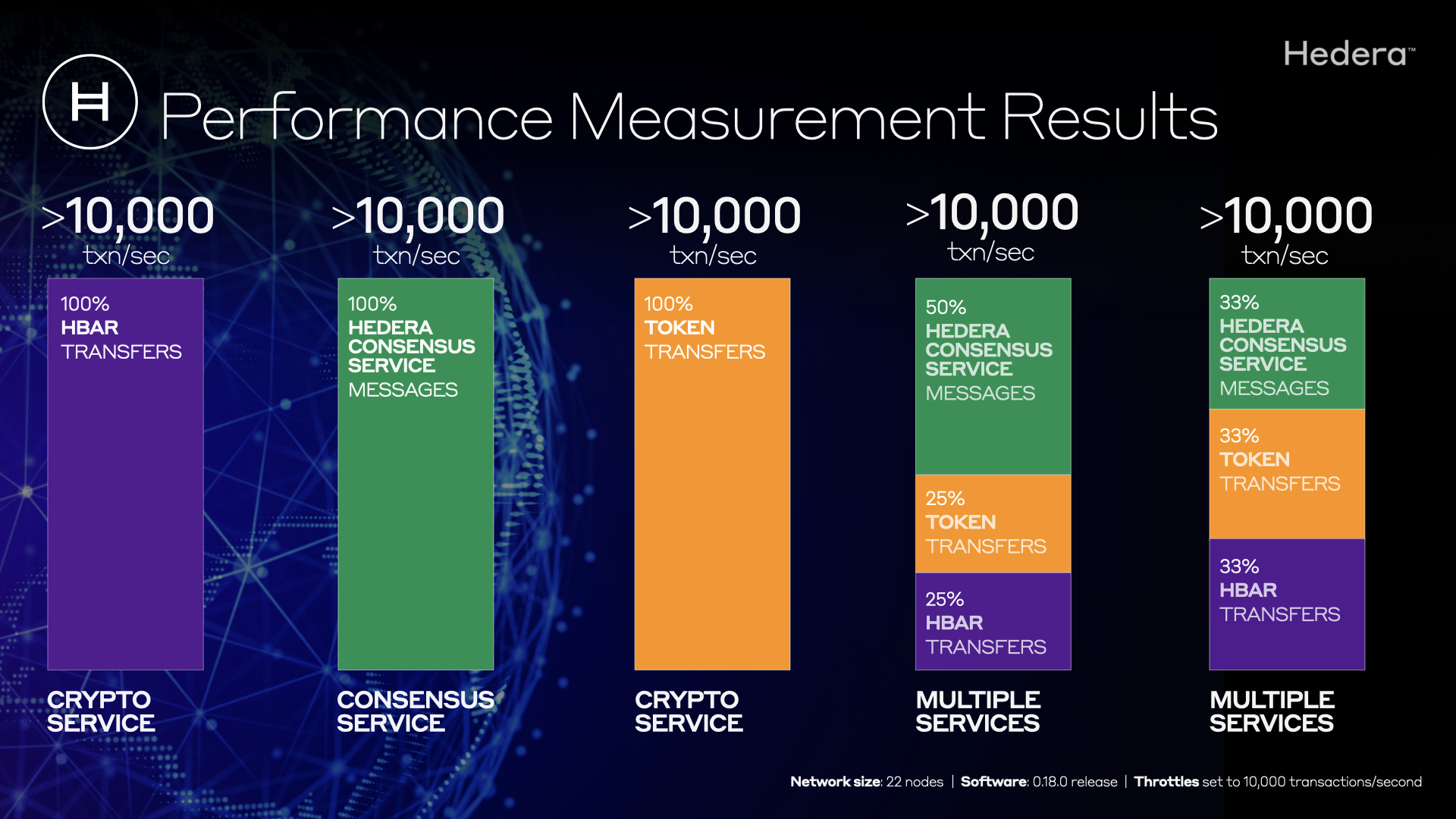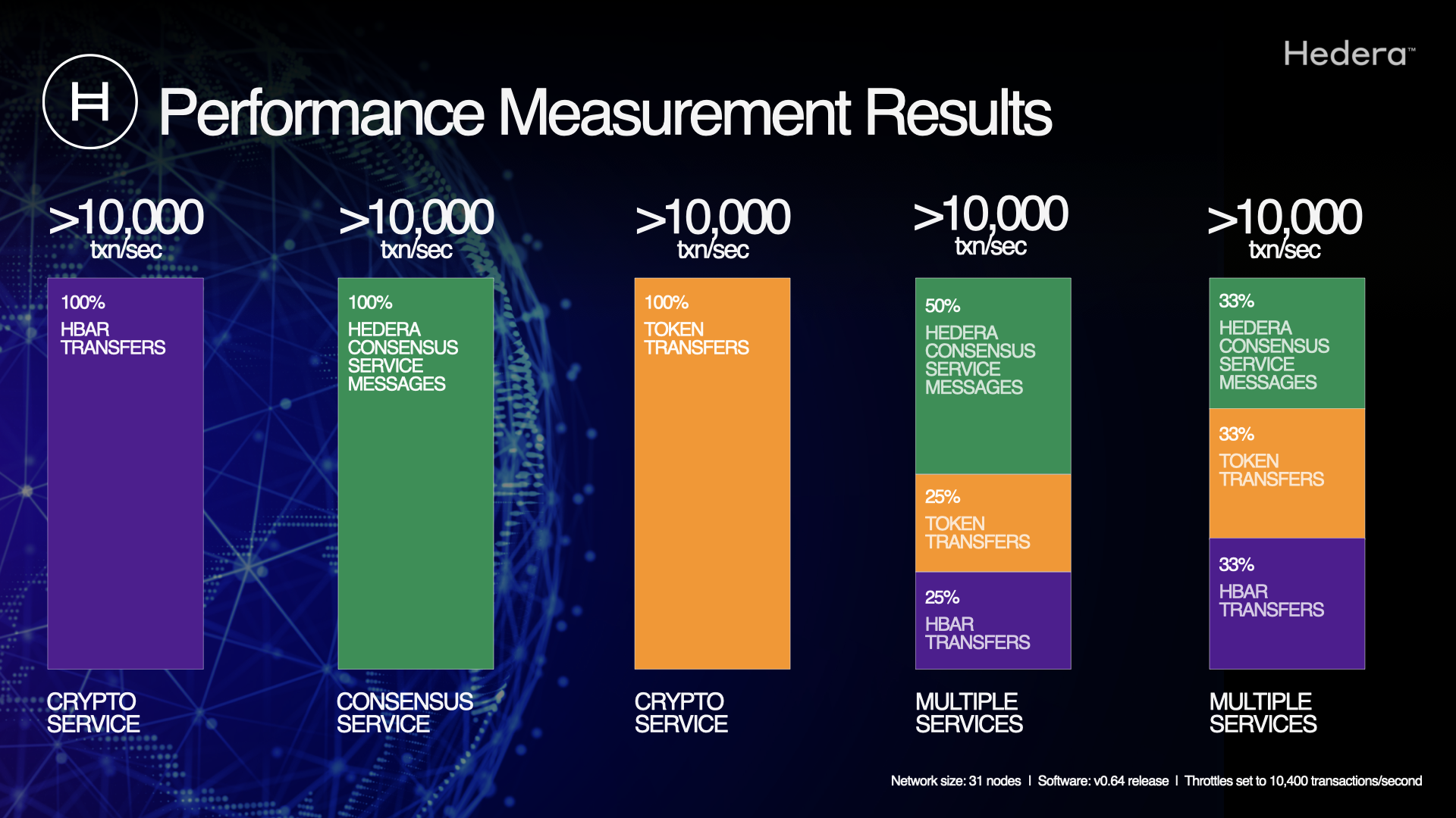 - Software update includes the ability for Hedera to dynamically set throttles on network transaction types.
