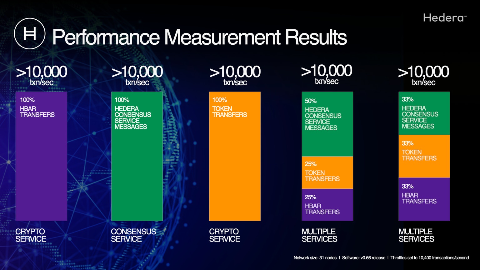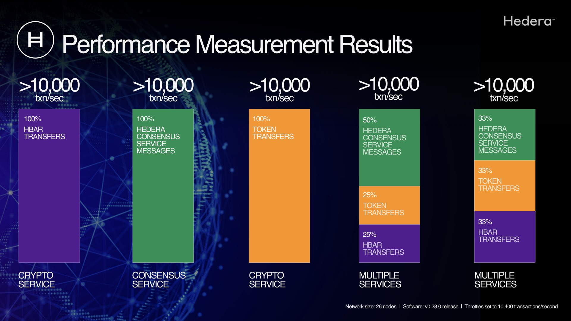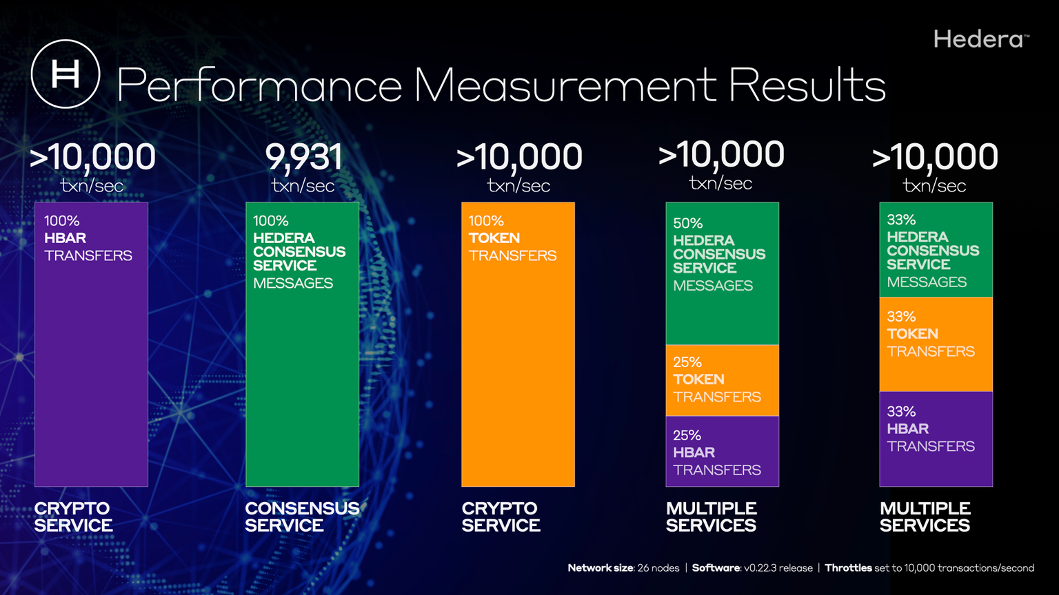 - Software update includes the ability for Hedera to dynamically set throttles on network transaction types.