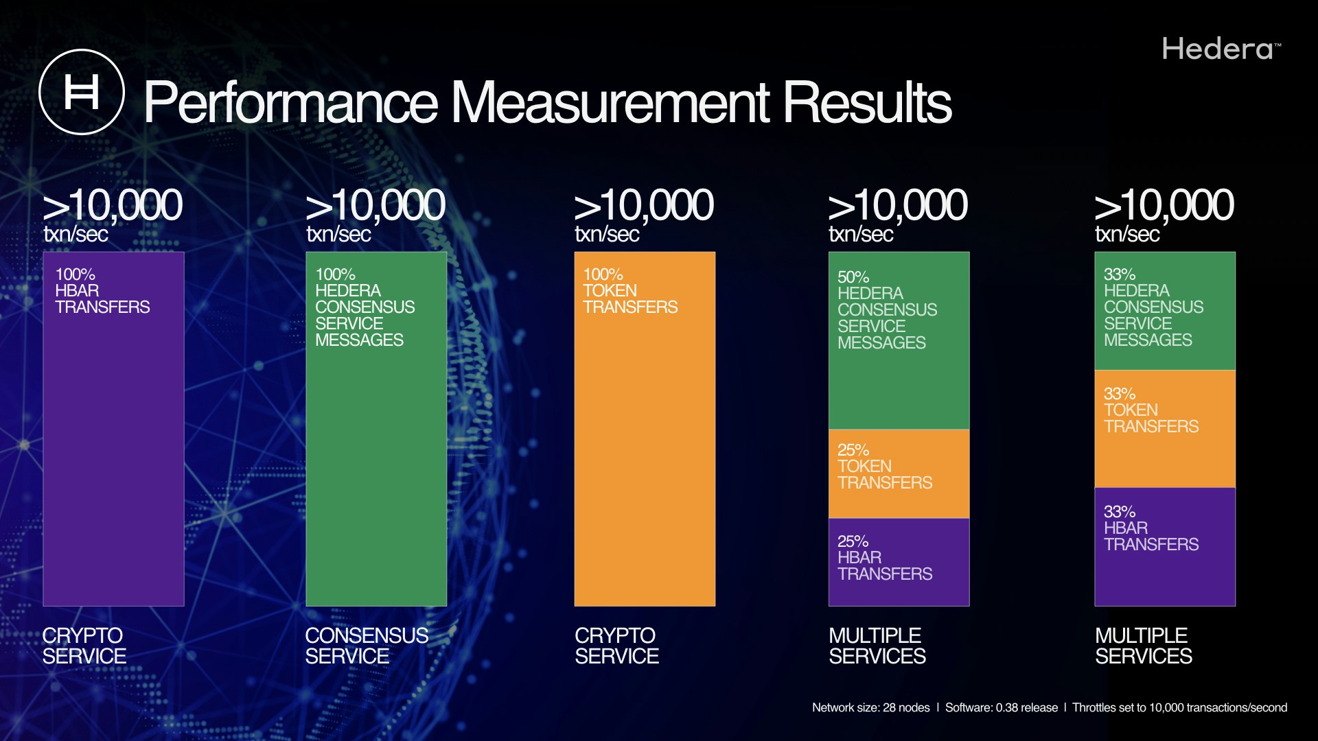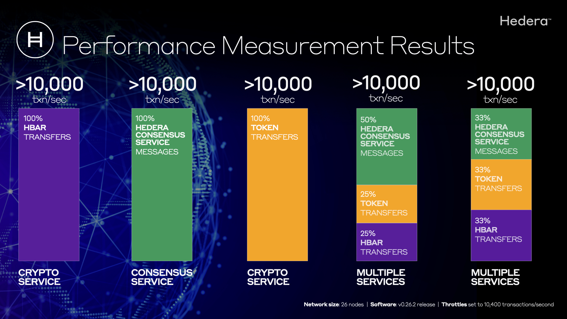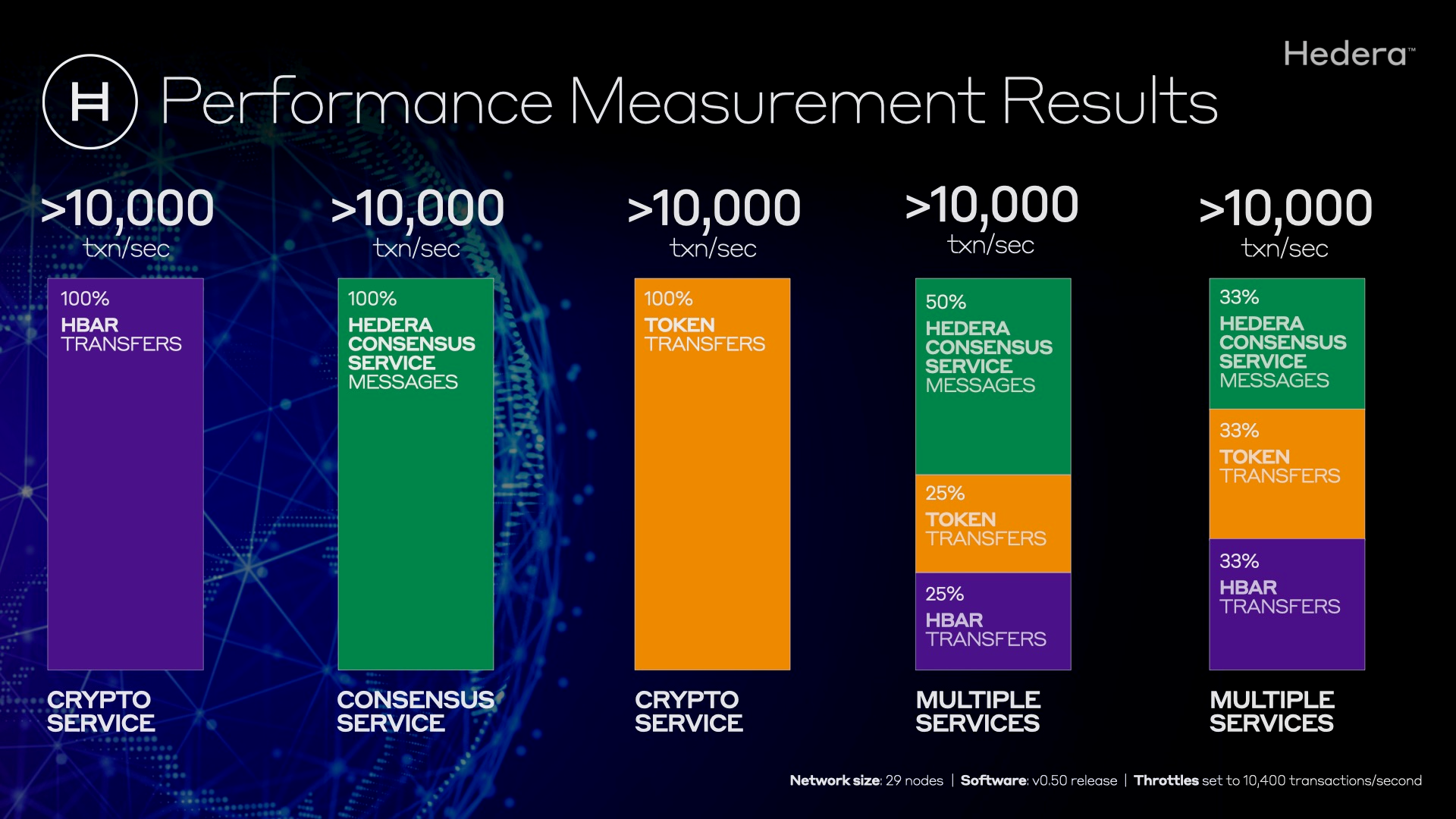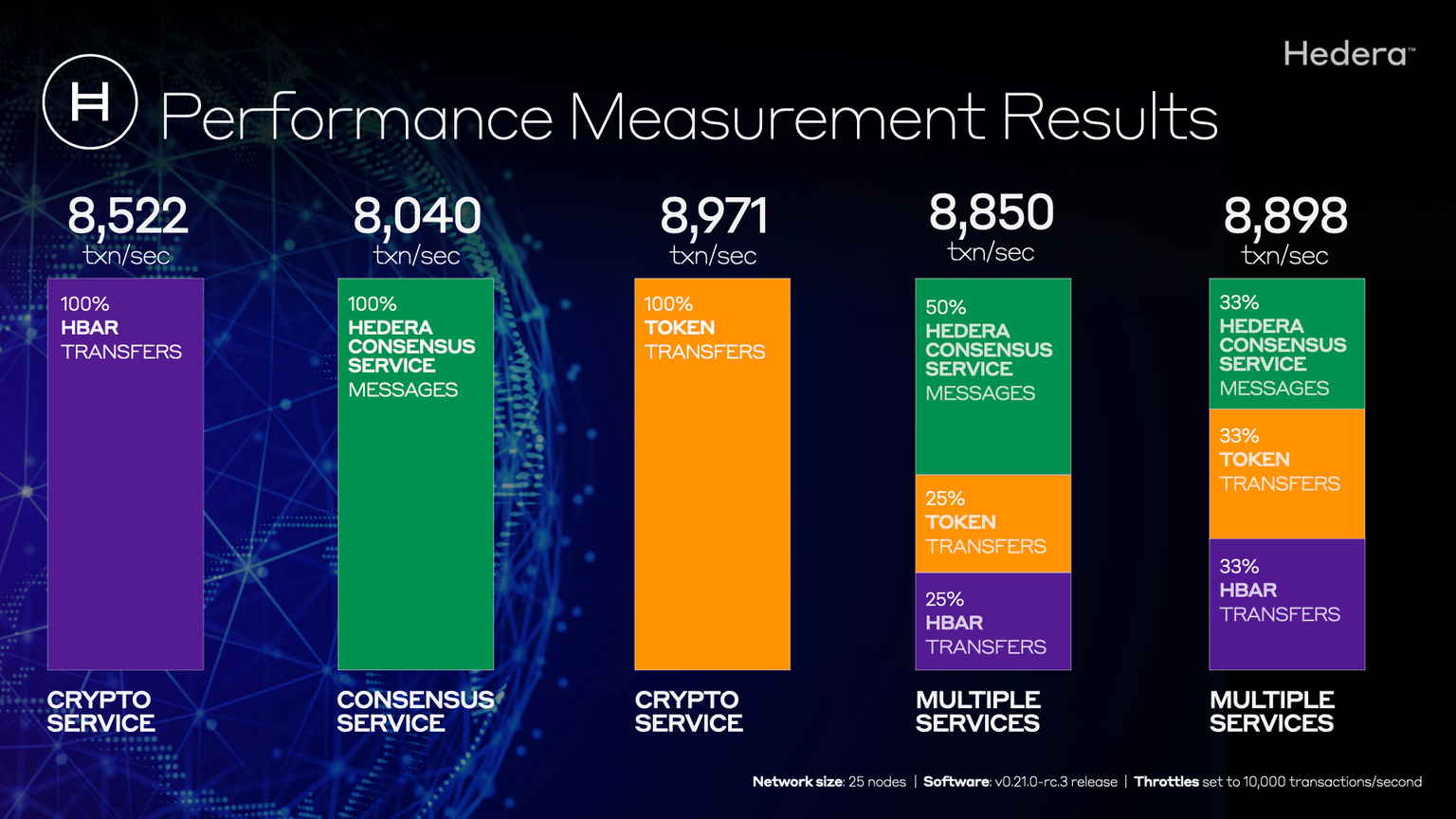 - Software update includes the ability for Hedera to dynamically set throttles on network transaction types.