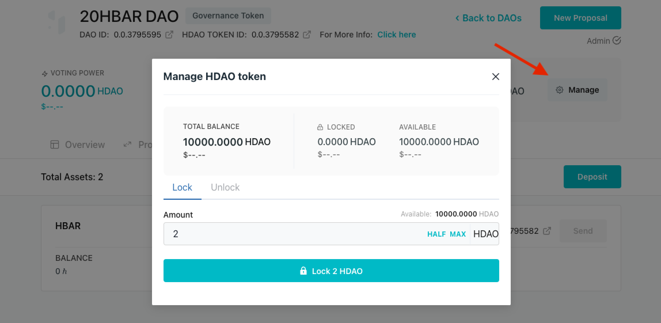 Note: There are no snapshots, like Ethereum-based DAOs, instead, your tokens are locked up for the duration of the vote. Your voting power is equal to the amount of tokens you lock up.