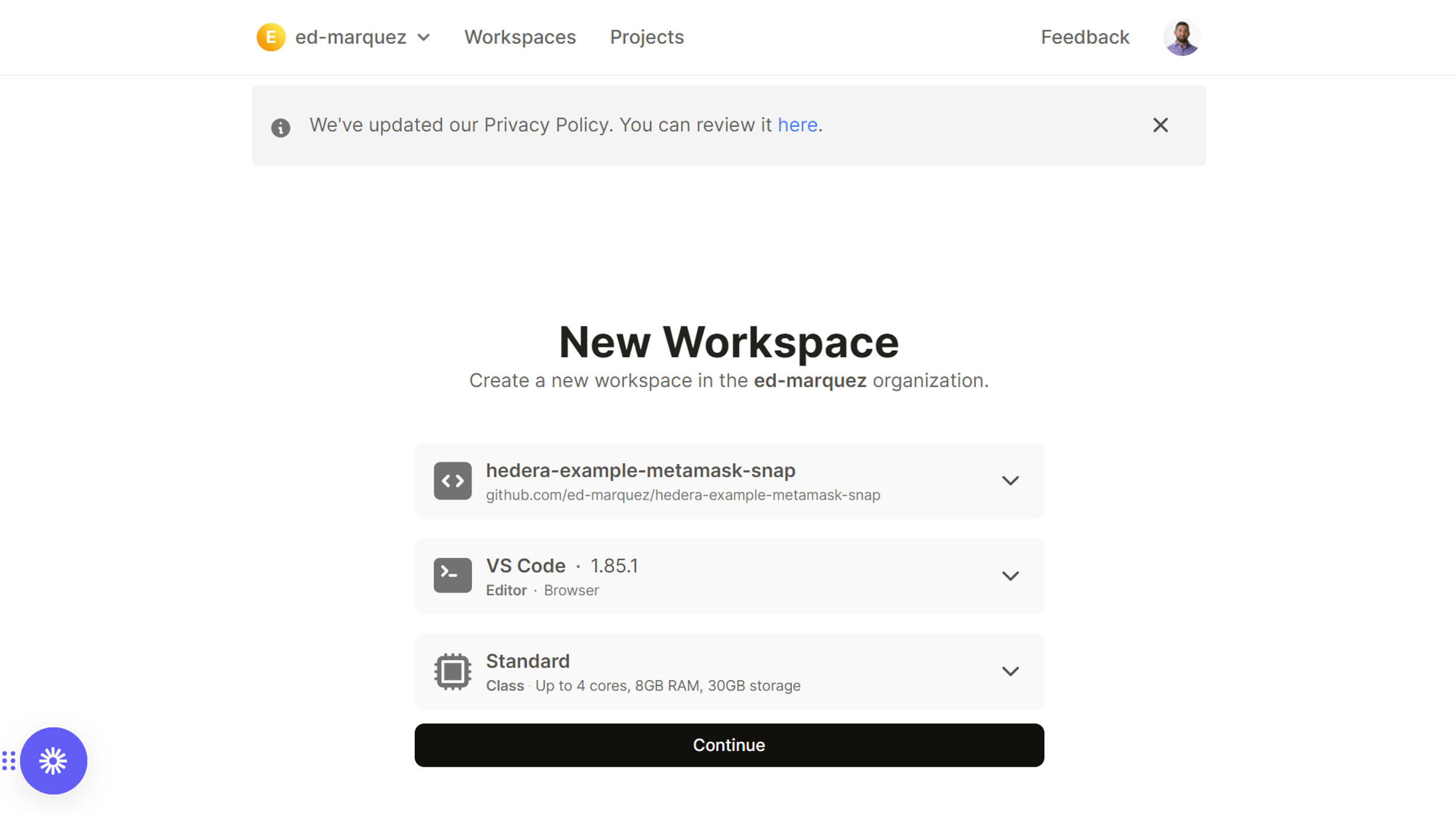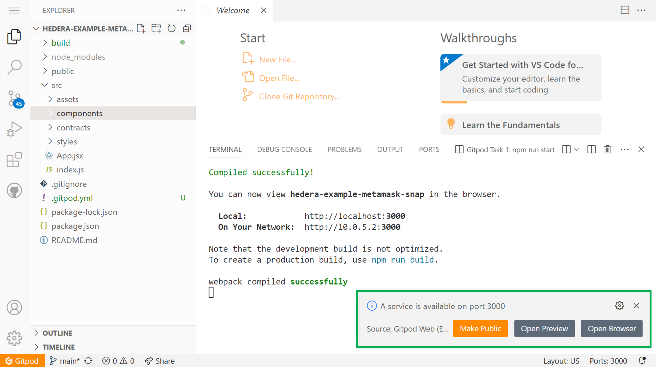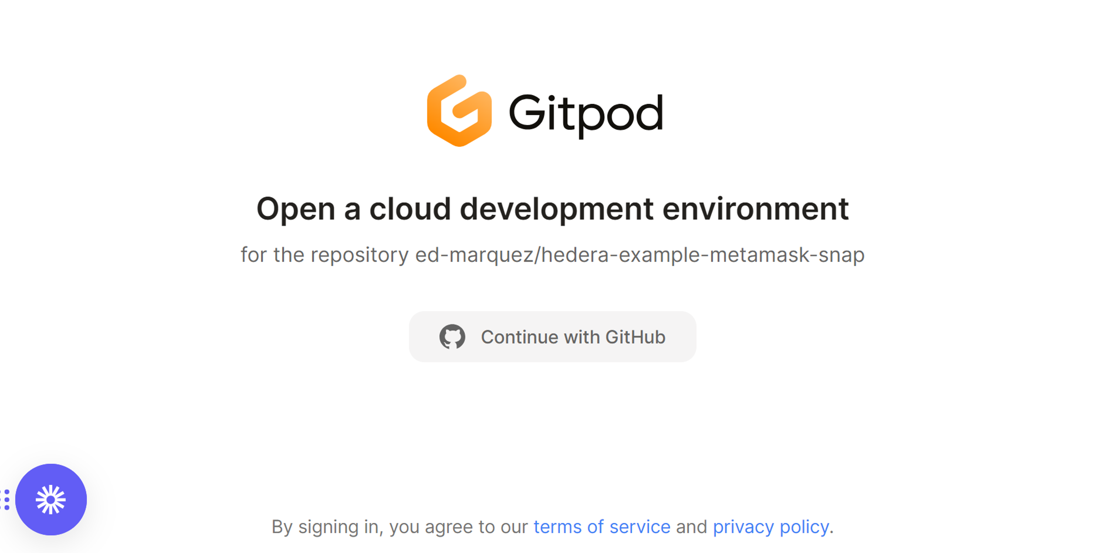 This option does not require installing anything on your machine. All you need is a compatible web browser. Click here to set up the GitPod environment. You will see the following: