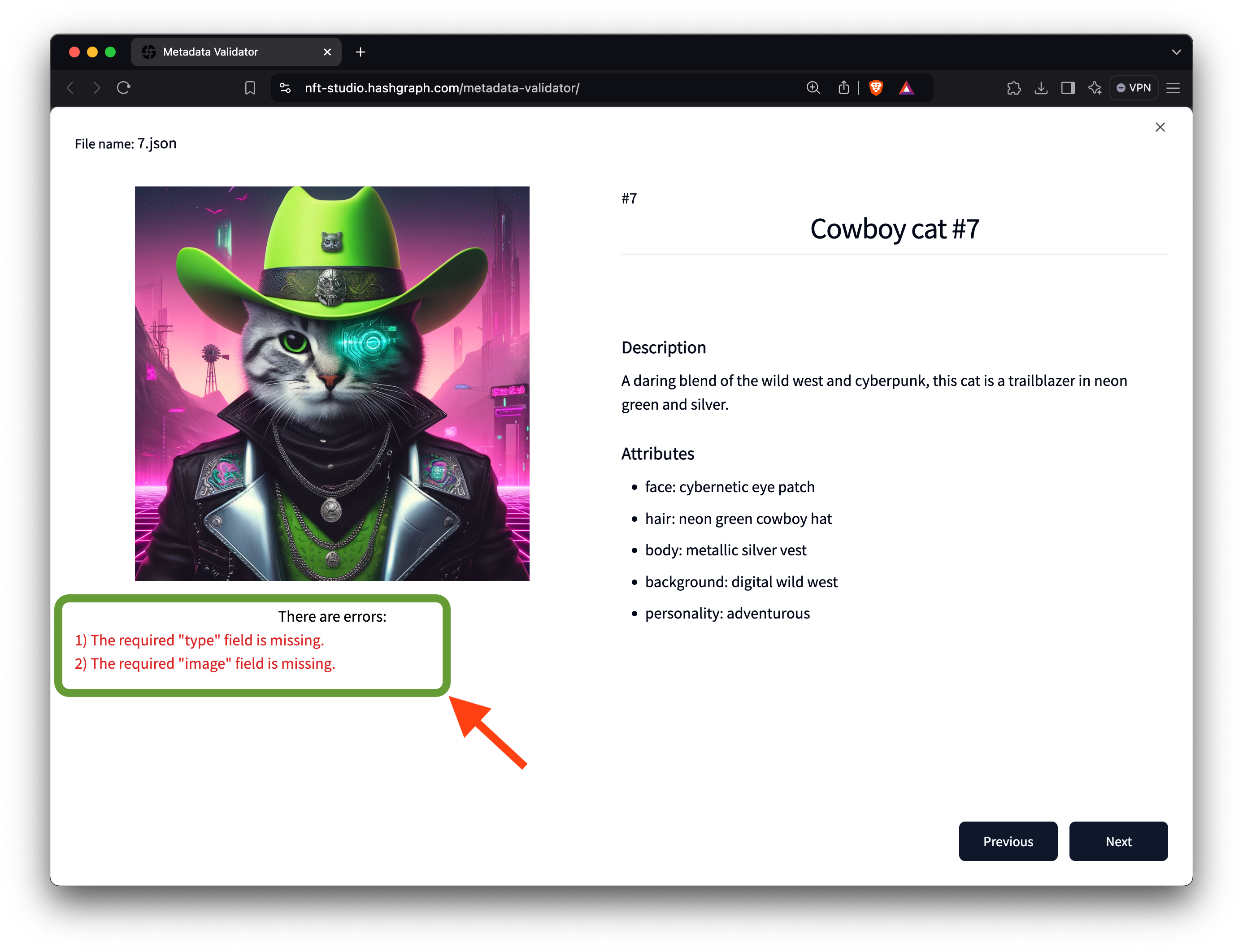 - Before minting your NFTs on Hedera, use the Metadata Validator to ensure all