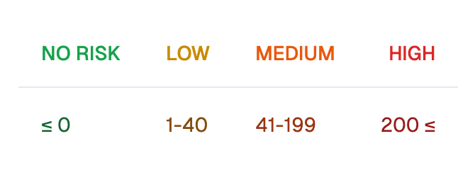 • You can use this breakdown to pinpoint high-risk settings, allowing you to make targeted adjustments to your token configuration.