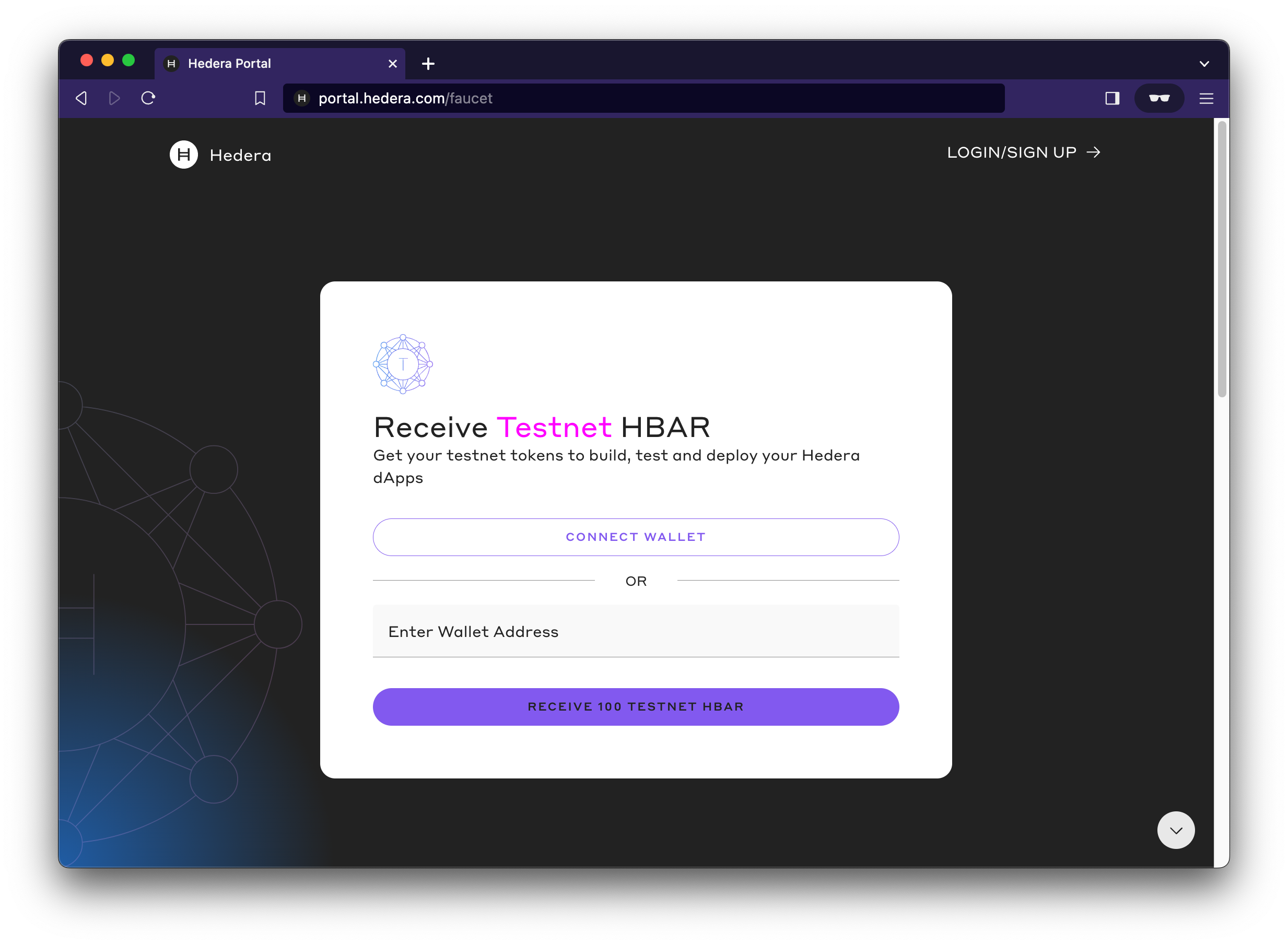 Visit the Hedera Developer Portal and follow the steps to sign up and create your testnet account.
